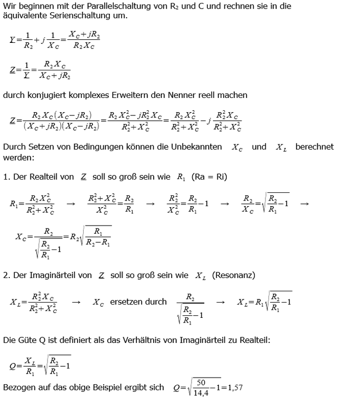 Dieser große Strom verursacht an den Blindwiderständen hohe Spannungen. Deshalb ist diese Schaltung auch gut zur Anpassung endgespeister Drähte geeignet.
